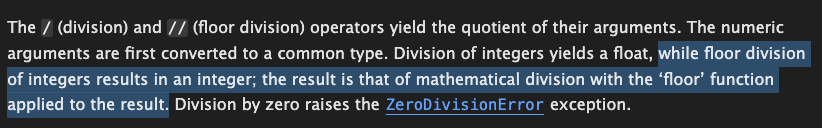 Python์ ' // '์ฐ์ฐ์๋ ๋ด๋ฆผ์ ํด์ ๋ชซ์ ๊ตฌํ๊ธฐ ๋๋ฌธ์ ๋๋ค.