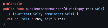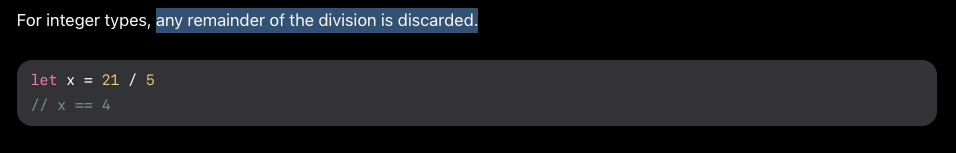 Swift๋ ๋ชซ์ ๊ตฌํ ๋, ๋๋จธ์ง๋ฅผ ๋ฒ๋ฆผํ์ฌ ๋ชซ์ ๊ณ์ฐํฉ๋๋ค.