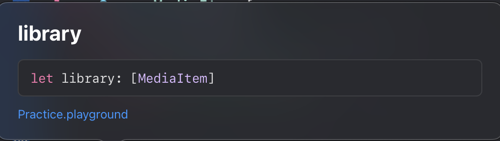 let mediaItem1 = Movie(name: "Casablanca", director: "Michael Curtiz") as MediaItem